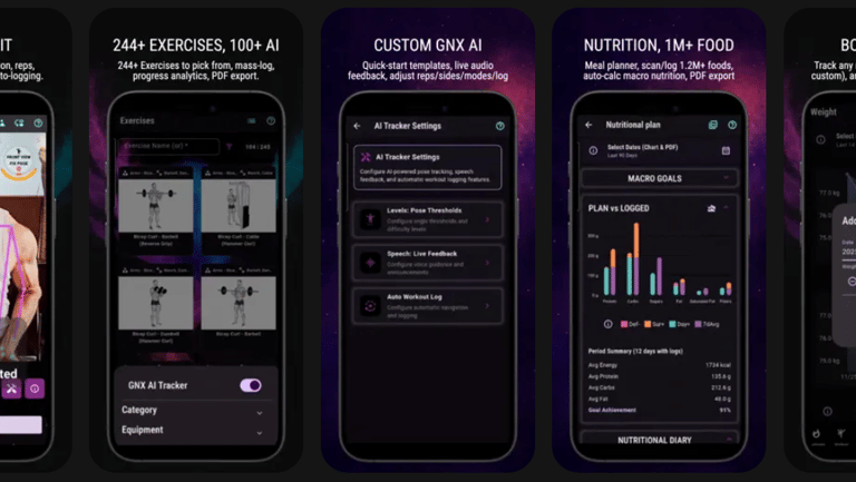 GNX AI tracks your posture, movement at every step, provides feedback in real-time, and allows auto-logging results for goal adherence & review.